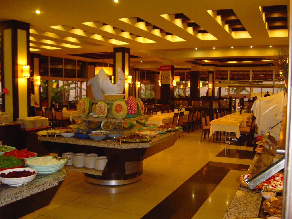 Servicii: Ultimate All Inclusive : conceptul incepe cu o intampinare a clientilor in hotel cu un desert traditional turcesc numit "cezerye" si cu un pahar de bautura dulce de fructe numita "sherbet". Se va continua cu traditionala ospitalitate turceasca, oferind o gama larga de meniuri si bauturi pentru 24 h. Carreta Restaurant (locul unde se serveste micul dejun, pranzul si cina-tip bufet)- 07.00-10.00; mic dejun tarziu 10.00-11.00; snacks service 12.00-17.00; pranz-12.30-14.00; prajituri 17.00-18.00; cina 19.00-21.00; restaurante a la carte (turcesc, italian, mediteraneean, cu rezervare); masa tarzie 23.30-24.00; pool bar, vitamin bar, disco bar, pool bar, patiseria.