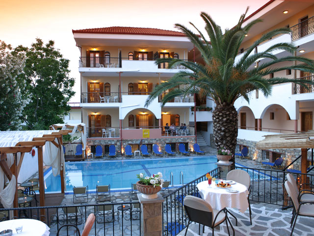 Localizare: Hotelul este construit intr-o gradina spatioasa, la 20 de metri de plaja, in insula Thassos. Satul turistic Prinos se afla la 2 kilometri, iar Limenas, capitala insulei, la 15 kilometri. Hotelul Princess Calypso 3** din Prinos ofera conditii moderne de cazare si facilitati deosebite, pentru vacante relaxante la malul marii Egee. Hotelul va fi renovat integral in perioada 2015-2016.