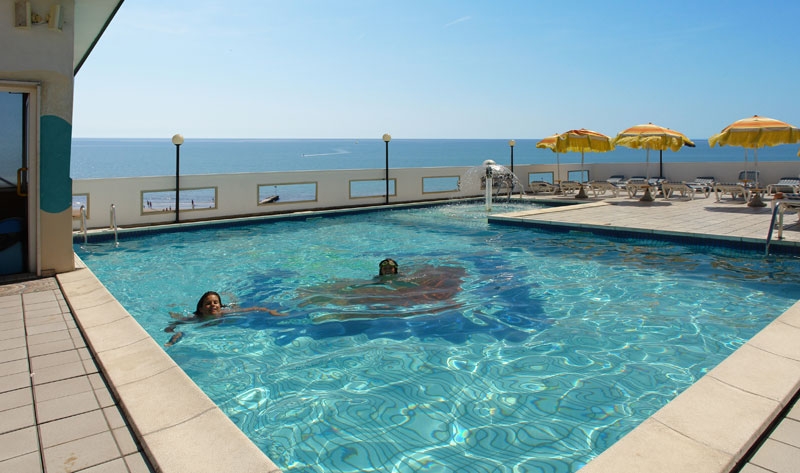 Facilitati hotel: Hotelul este complet renovat, dotat cu receptie, restaurant, terasa cu snack Bar si Pizzerie, lift, solar, aer conditionat, piscina pe acoperis si Jacuzzi cu vedere la mare, bar, seif, parcare privata, piscina, plaja private.