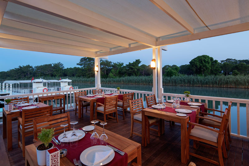 Facilitati hotel: Hotelul Titanic Deluxe Belek 5* ofera oaspetilor sai restaurant principal, meniu dietetic, 6 restaurante a la carte (italian, barbeque, pescaresc, turcesc - cu rezervare, o masa/sejur la fiecare restaurant - gratuit; restaurantul Privado, pe vapor - contra cost), 13 baruri (1 bar deschis 24 ore), 6 piscine exterioare (una olimpica, una cu apa de mare, una cu incalzire), piscina interioara, 4 tobogane, cinema, centru SPA & Wellness, centru business, coafor, lant de magazine, spalatorie, curatatorie chimica, 3 sali de conferinte (40-2450 persoane) si 3 terenuri de fotbal (68x105).