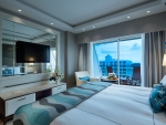 - 42 family pool suite cu 2 camere (vedere la gradina si piscina, 14 family pool garden, situate la nivelul 1 cu iesire directa la piscina comuna, 28 family pool balcony situate la nivelul 2 si 3 cu 2 dormitoare cu usa, 2 bai cu dus, 2 TV, max. 5+1 pers., 80 mp).