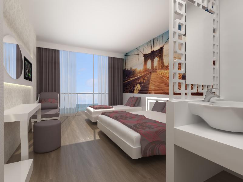 Facilitati hotel: Hotelul dispune de: restaurant principal, restaurant cu specific, 5 baruri, 2 piscine exterioare, 2 piscine pentru copii, 2 tobogane, sauna, baie turceasca, centru SPA, Internet gratuit in lobby, masa de tenis, magazin, doctor, sala de fitness, spalatorie, animatie, darts, volei pe plaja, biliard, sporturi motorizate de apa, mini golf, mini club (4-12 ani).
