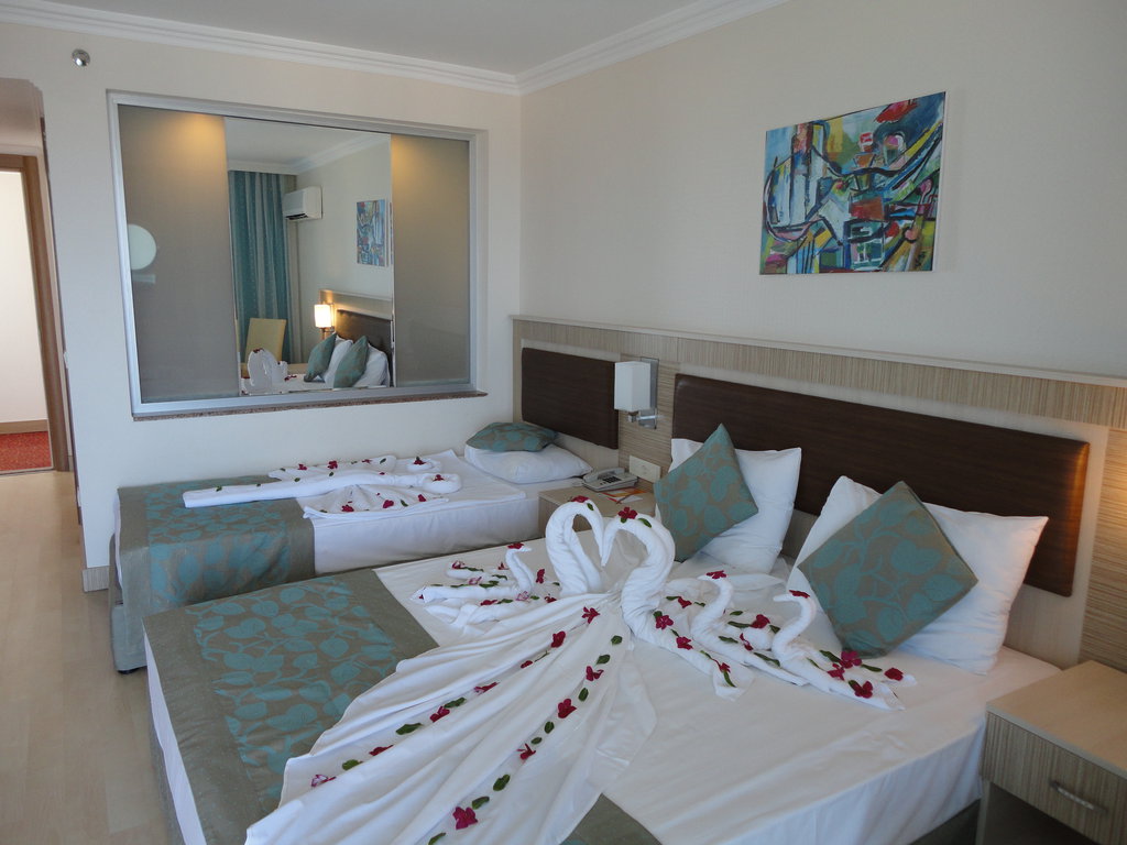 Plaja si piscine: Hotelul se afla la 350m de plaja din Side. Aceasta este cu nisip fin si se asigura serviciu de shuttle pana la plaja de catre hotel. Piscinele exterioare au 570 mp (piscina principala) si respectiv 132 mp (piscina de relaxare), piscina interioara 75 mp, piscina cu 2 tobogane, piscina pentru copii. Sezlonguri, umbrele si saltele la piscina si pe plaja gratuite. Prosoapele pentru plaja si piscine se pot lua de la centrul SPA cu cardul de prosop.