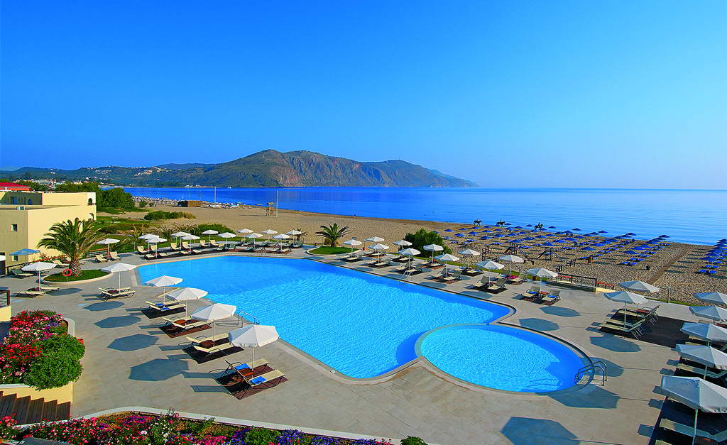 Localizare: Hotelul Pilot Beach Resort 5* se afla intr-o locatie linistita, panorama deosebita, plaja larga de nisip, recomandat cu inchiriere de masina, posibilitate de cazare pana la 5 adulti. Pe plaja larga de nisip, la 1,5 km de Georgioupolis, 20 km de orasul Rethymnon si 90 km vest de Heraklion.