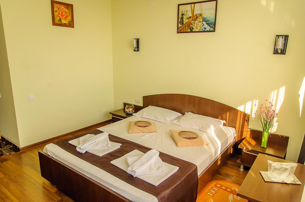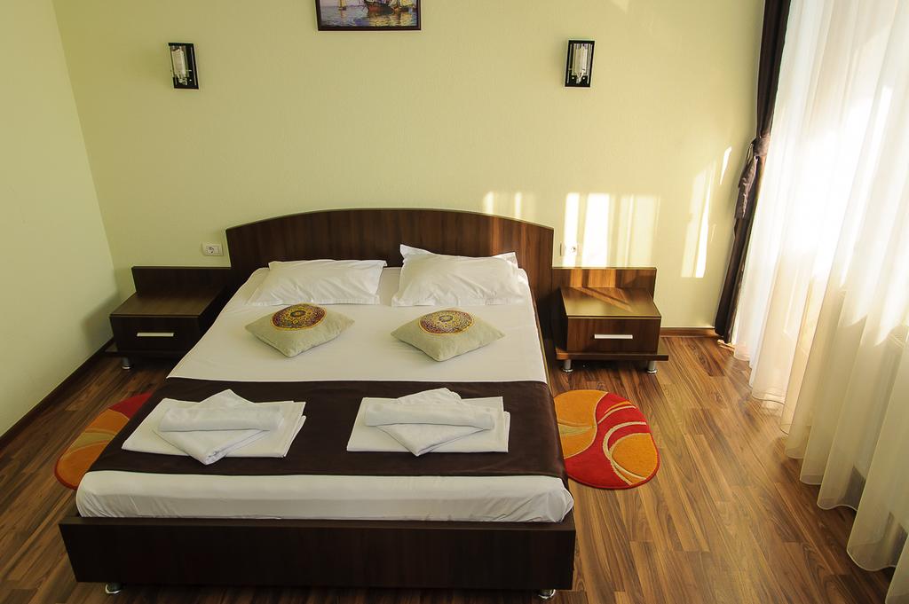 Camerele duble dispun de: TV+cablu, Wi-Fi, aer conditionat, balcon cu vedere la mare, cabina de dus, uscator de par.