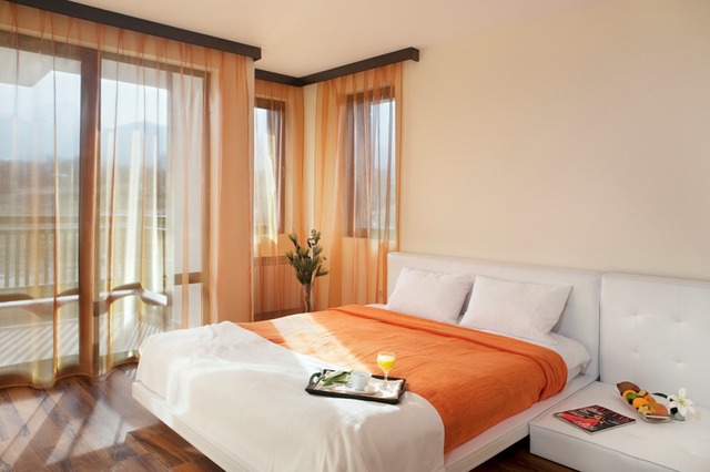 Apartament 2 dormitoare: doua dormitoare, living cu kitchinetta si canapea extensibila, TV, telefon, mini bar, conexiune la internet, baie cu cada / dus (2 bai), uscator de par, halat de baie si papuci, balcon.