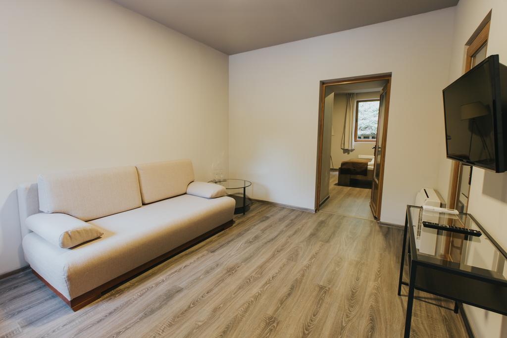 In camere, mobilierul militar a fost reconditionat. Ambianta aspra de altadata e mult indulcita, totusi exista o divizie si pentru amatorii care n-au facut armata, dar vor sa vada cum era. Lor le este dedicata camera tip bunker, dormitorul in burta de TAB sau patul pe afet de tun.